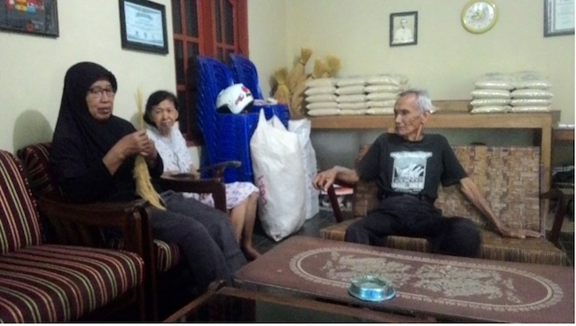 Bu Bayinah mengunjungi Mbah Gatot Surono dan isteri di Bukateja, Purbalingga: Sesama penggerak benih lokal dan petani organik (Dok. Tim AOI, 2019)