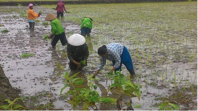 'Ya sekali. Saya dan temen-teman menanam ya padi-padi-jagung. Begitu urutannya dalam setahun. Bila masih banyak air para petani menanam padi, tetapi bila airnya telah berkurang, ya semua menanam jagung,' ia menambahi penjelasan.