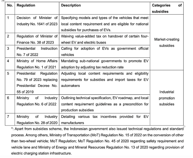At the apex of the nexus, the President and senior Ministers create incentives, local content requirements and subsidies to boost EV uptake. In addition to the market-creating and industry-supporting regulations listed in Table 1, the Jokowi Administration provides subsidies for EV manufacture. Effective from 20 March 2023, US$450 in tax deductions (about 7 million rupiah), will be provided for each new electric moped made in Indonesia. The government will subsidise purchases of up to 138 electric buses and 35,900 electric cars in 2023. Among cars, only Hyundai’s Ioniq 5 and China’s Wuling Air EV meet the requirement of at least forty percent local content. Among e-mopeds, there are at least twelve local brands that meet the threshold, including Gesits (IBC-owned), Volta, Yadea, and Selis.