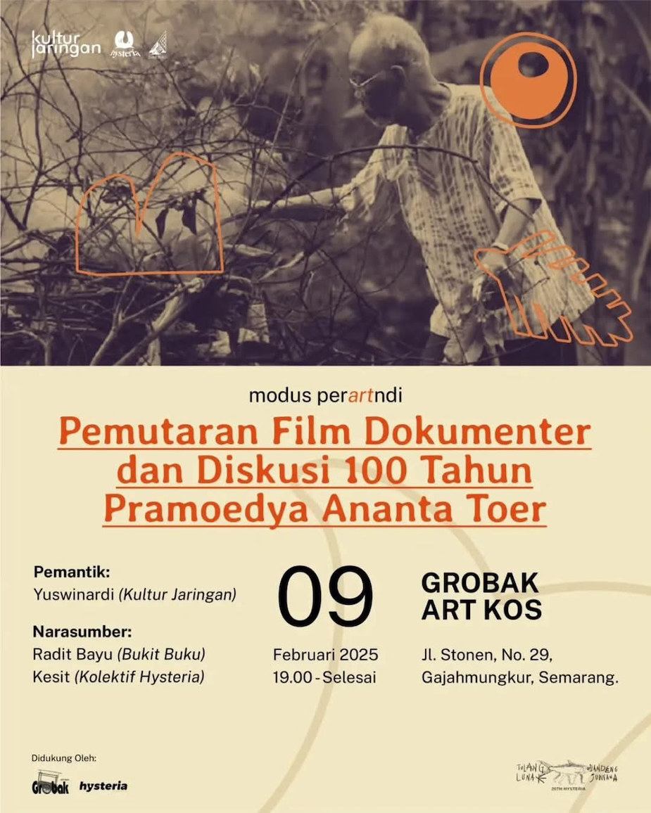 The event was a series of talks to commemorate the centenary of the birth of Pramoedya Ananta Toer. This event at TIM was jointly organised by nine different organisations. They included trade unions, urban poor organisations, and student groups. The bookings had filled up so quickly, these organisations had to limit the number of their own members who could attend. They were the ones watching outside in the lobby on big TV monitors.