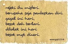 But, no matter how hard you work, ultimately, it’s up to God. He will provide rejeki if it’s your fate (nasib). So, a principle of detached acceptance is counselled: remember rejeki is out of your control. It is God who determines it, so don’t worry yourself too much. Just be sure you are in the right state to receive it if it comes, and be thankful when you do get it. These days people dispense this kind of advice through memes as a reminder to others.