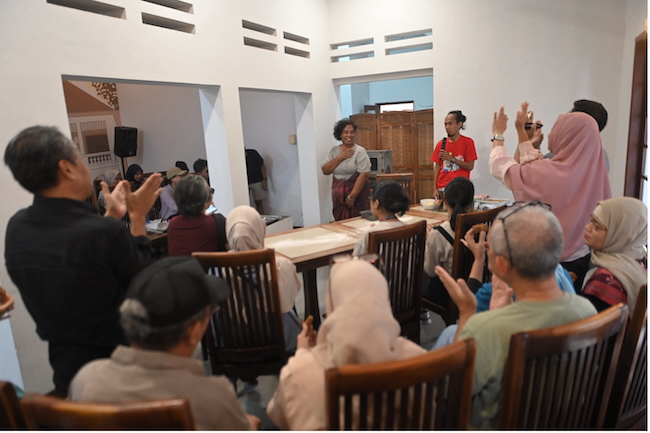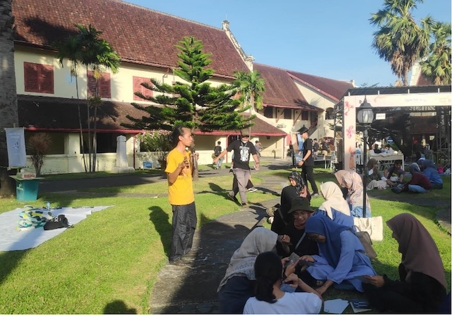 The impact of this shift is seen at MIWF 2024, represented in the number of panels, events, and volunteers. Many volunteers were students, but participants also included members of Makassar’s various art networks. It is also demonstrated in the types of events organised, and themes for conversation. The festival was primarily interdisciplinary, looking beyond the written word to art and photography exhibitions, film screenings, theatre, and music. Fort Rotterdam’s various buildings held space for grassroots learning, doubling as cinemas, workshops, and galleries. Although these were not necessarily new activities compared to previous years, the larger scale achieved this time is notable. This interest in promoting visibility through interdisciplinarity has allowed a diverse range of art forms to be represented; in turn, feeding back into the larger Makassar arts ecosystem.
