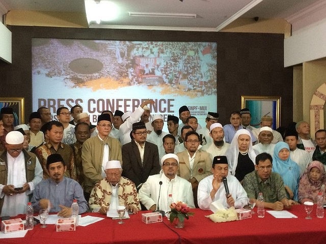 An ad hoc coalition, Gerakan Nasional Pengawal Fatwa MUI (National Movement to Guard the Fatwa of the Indonesian Ulema Council, or GNPF-MUI), organized the Aksi Bela Islam demonstrations on 14 October, 4 November and 2 December, in 2016, demanding that Ahok be defeated, tried, and convicted of blasphemy. At the December event, unofficial estimates put the crowd size at between 500,000 and 750,000 but numbers cited ranged from 200,000 to as many as 2 million.