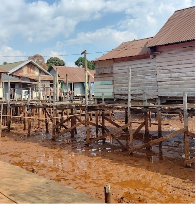 Residential area in Pomaala subdistrict close to a mining company’s waste disposal pond / Mahesti Hasanah