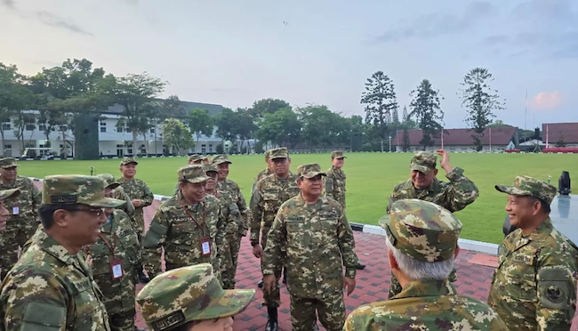President Prabowo presides over a morning marching drill for members of the Red and White Cabinet at the Military Academy, Magelang, Central Java, on Friday October 25, 2024 / Kantor Staf Kepresidenan